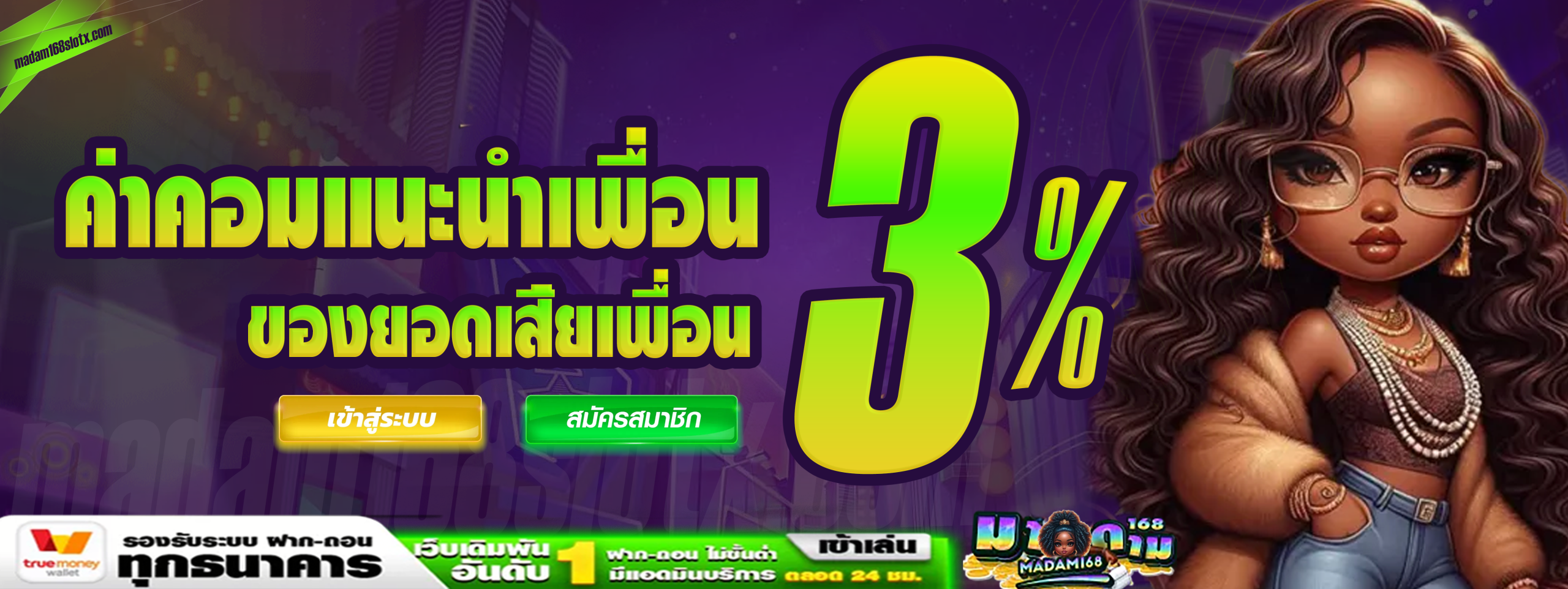 ตอบ : madam168 เป็นเว็บพนันออนไลน์ที่ให้บริการเกมหลากหลาย เช่น บาคาร่า สล็อต และกีฬา เว็บนี้มีระบบฝาก-ถอนเร็ว และมีโปรโมชั่นดึงดูดผู้เล่น